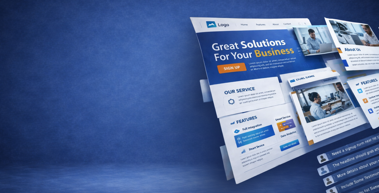 A commissioned prototype (not a full product). A landing page can be generated and edited through chat: the user says what to change, and the page up